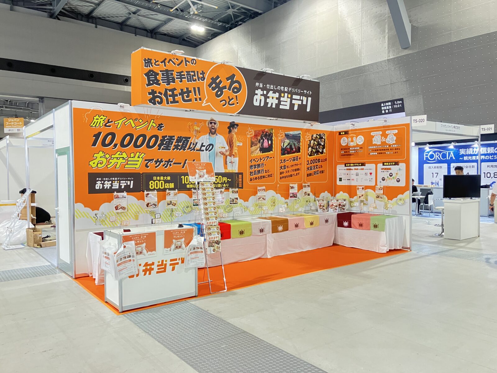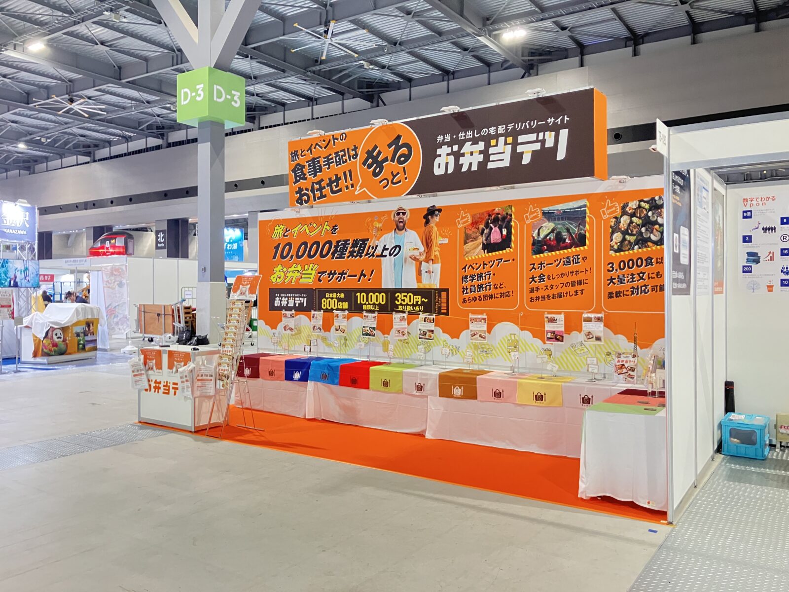 詳細 2025年9月25日〜28日に開催された「ツーリズムEXPOジャパン2025 愛知・中部北陸」にて、ワオ株式会社さまの展示会ブースのデザイン・設計・施工を担当させていただきました。今回のブースは、会場内での視認性とブランドの世界観を両立させるため、ワオさまのコーポレートカラーである鮮やかなオレンジを基調としたデザインを採用。2面開放のレイアウトにより来場者が立ち寄りやすく、サービスの魅力が自然と伝わる導線を設計しました。ブース全体では、「旅とイベントの食事手配はまるっとおまかせ」「お弁当デリ」というワオさまの事業メッセージを、大きく分かりやすいグラフィックと写真を使用して訴求。提供可能な10,000種類以上のお弁当ラインナップ、豊富な実績、スムーズな手配イメージを視覚的に理解してもらえる構成としています。また、実物サンプルを配置することで、来場者がお弁当の見た目やボリューム感を確認でき、注文イメージを具体的に持っていただけるブースとなりました。